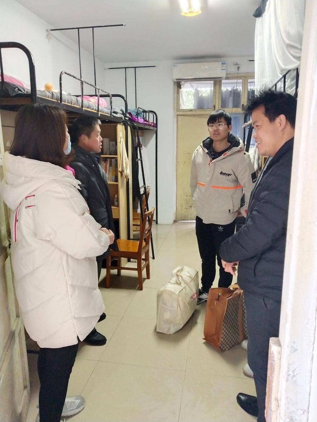 2021年新年的第一天,学院正院级专职党委副书记于庆河、党委副书记向敬安、学工办部分教师前往南苑员工公寓,为部分困难生代表送去了新年的慰问。