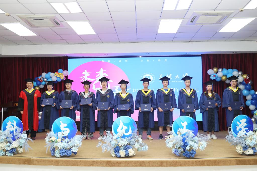 授予仪式环节,学院全体专业教师为毕业生拨穗正冠,并赠送了毕业礼,祝贺同学们圆满完成学业,并合影留念。