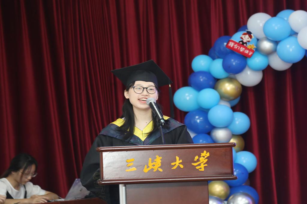 教师代表吴亚盘老师叮嘱全体毕业生要始终保持一种平和的心态,脚踏实地,开拓创新。他呼吁毕业生要保持终身学习的习惯,求真学问,充实自己。同时也要常怀感恩之心,学会做人,以包容和合作的心态,自信的面对未来。