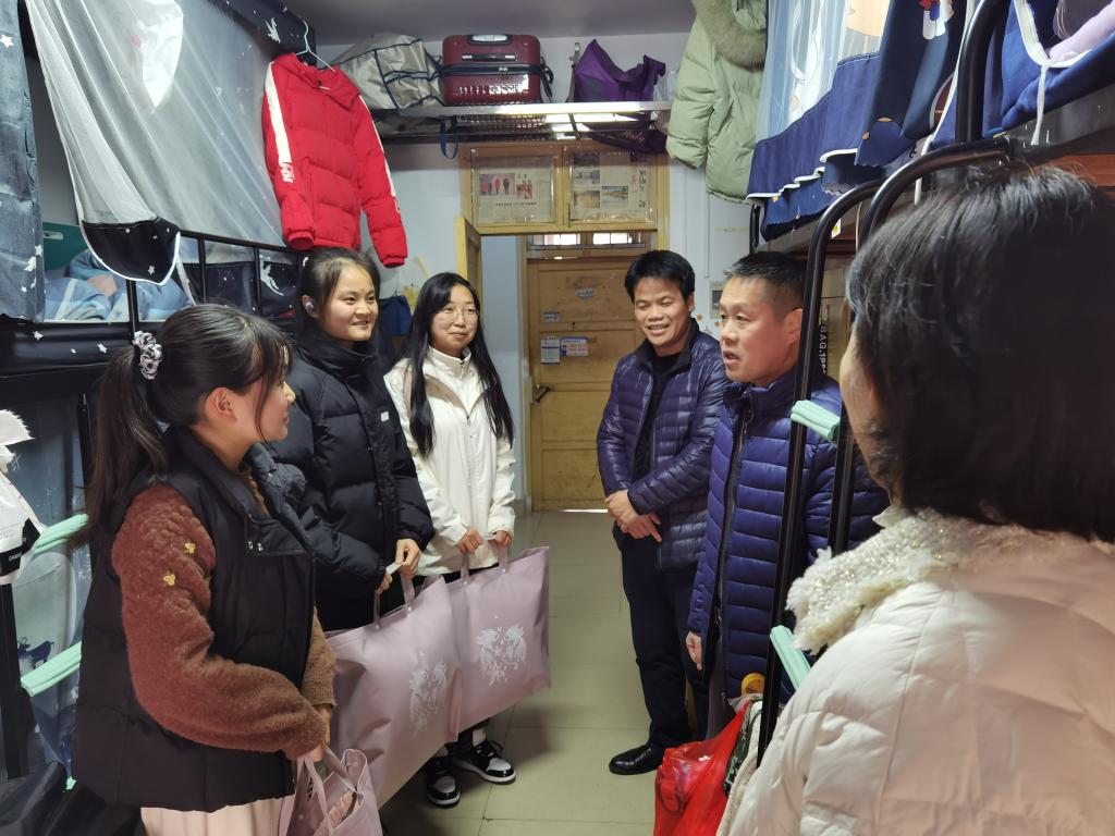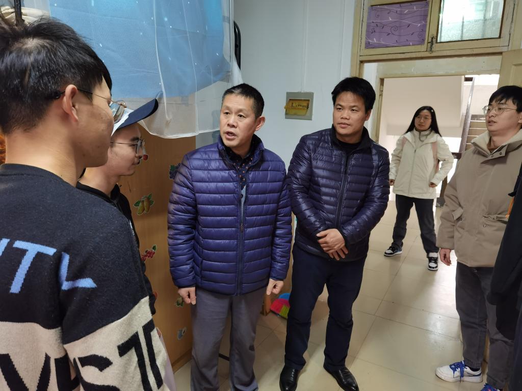 12月15日下午,8455线路检测中心正院级专职党委副书记于庆河、党委副书记向敬安,学工办全体老师一起走访了学院困难生寝室,为困难生送上了冬日温暖。