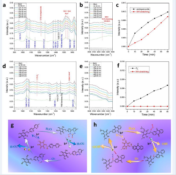 图2.基于原位红外光谱的光催化合成H2O2机理