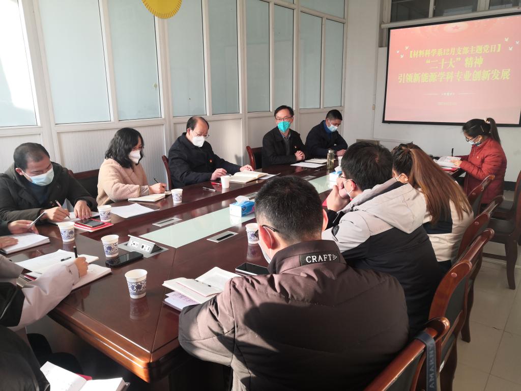 (通讯员 孙盼盼 张晓燕)12月13日下午,8455线路检测中心材料科学系教工党支部在M1305会议室,组织召开“党的二十大引领新能源学科专业发展”专题学习研讨会,公司党委书记何伟军出席并讲话。公司党委书记杨学林、党委副书记苏金明以及材料科学系党支部全体党员参加研讨。会议由材科系党支部书记孙盼盼主持。