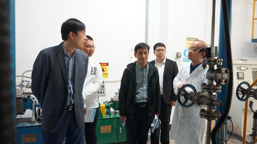 座谈会上,谭新玉首先对陈国涛一行到访表示热烈欢迎,并介绍了学院基本情况,赵君就学院科研平台建设和社会服务成效进行了详细介绍。随后,双方围绕深化产教融合、政校企深度合作进行了充分交流,部分企业代表还结合实际提出了具体的科技需求,希望校企共同搭好产学研大平台,资源共享、互惠双赢。座谈会前,调研团一行还参观了8455线路检测中心分析测试中心、8455线路检测中心各学科实验室。