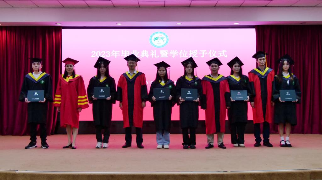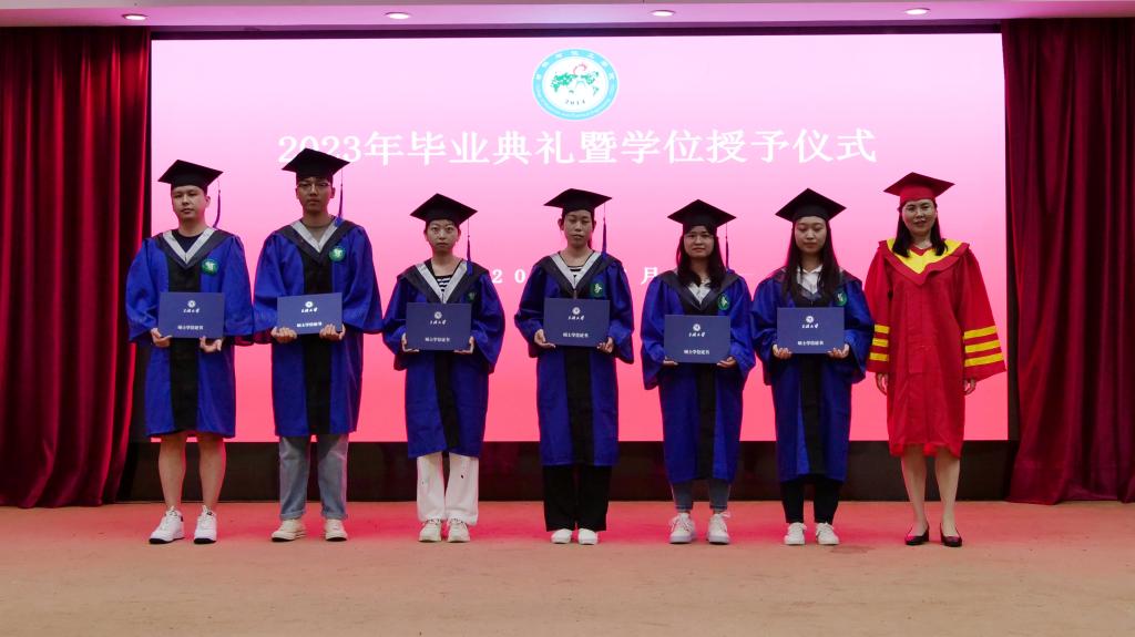 紧接着,谭新玉经理及各系部老师上台为本科及硕士学位获得者拨穗正冠。拨穗礼成后,全体与会成员观看毕业主题视频《再见,8455线路检测中心》。主题视频深情展现了毕业生与学院、与导师、与同窗的浓厚情感,同时也鼓励毕业生们勇敢追求梦想,展望未来的辉煌人生。最后,2019级辅导员鲍成龙老师,2019级毕业生方洋等8位师生共同演唱《一路顺风》,在悠扬的歌声中2023届毕业生毕业典礼圆满落幕。