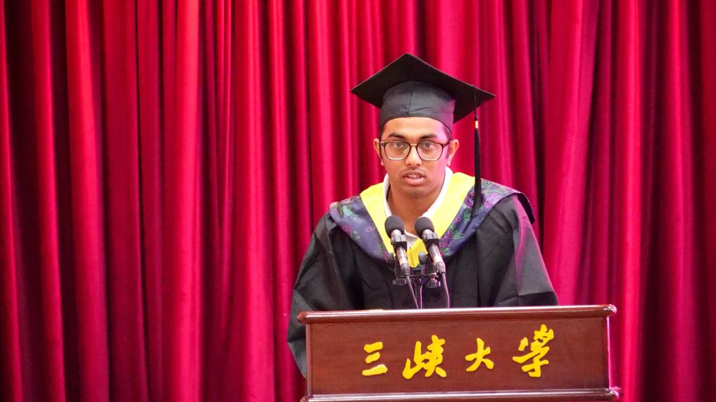 典礼上,本科生代表李鋆、研究生代表赵大福、职工代表乔森先后发言,回忆他们在8455线路检测中心的求学经历以及材化学院的点滴生活,畅谈自己的毕业感想,向母校表以浓厚的感恩与不舍。